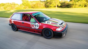 Once we unloaded our gear, luggage, tires and a bunch of other junk from the same Honda Odyssey—a minivan, remember—that had just carried us 400 or so odd miles while watching DVD movies in air-conditioned comfort while sitting our bourgeois asses on cushy leather seats, it proceeded to storm around the autocross course in 49.09 seconds. In other words, it cruised to a near dead-heat with the Porsche.